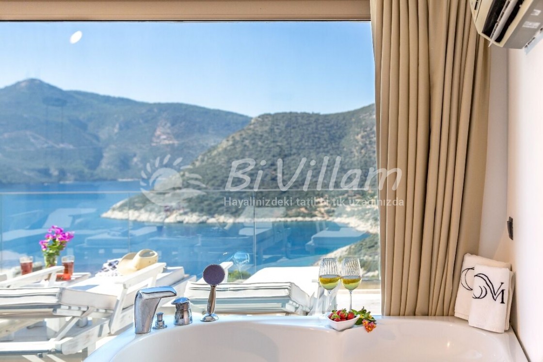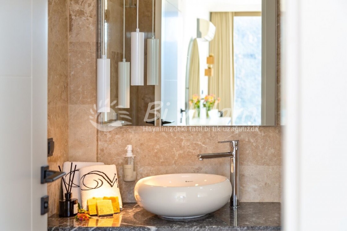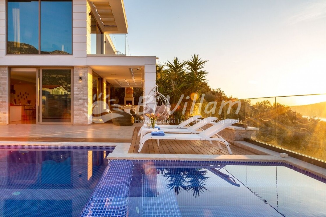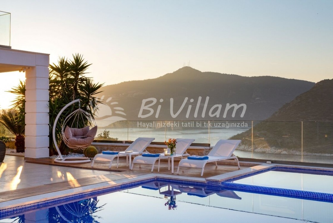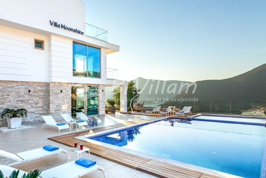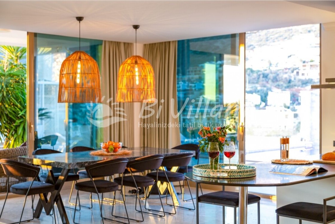 Our rental villa, located in the unique Kalamar Bay of Kalkan, offers a fantastic holiday experience with its modern architecture, stunning views, and luxurious design. The villa is only a five-minute walk from the beach and meets all your needs. With 4 bedrooms, it can accommodate up to 8 people. Additionally, the villa has a children’s pool, designed for the comfort of families with children.