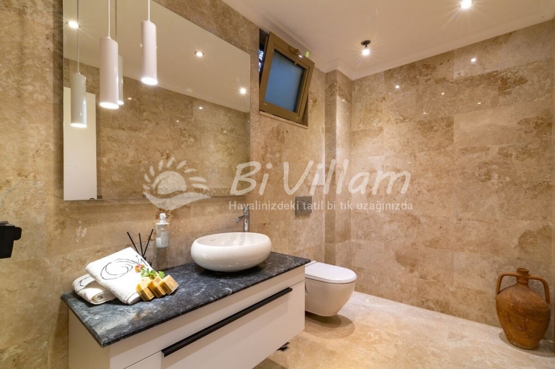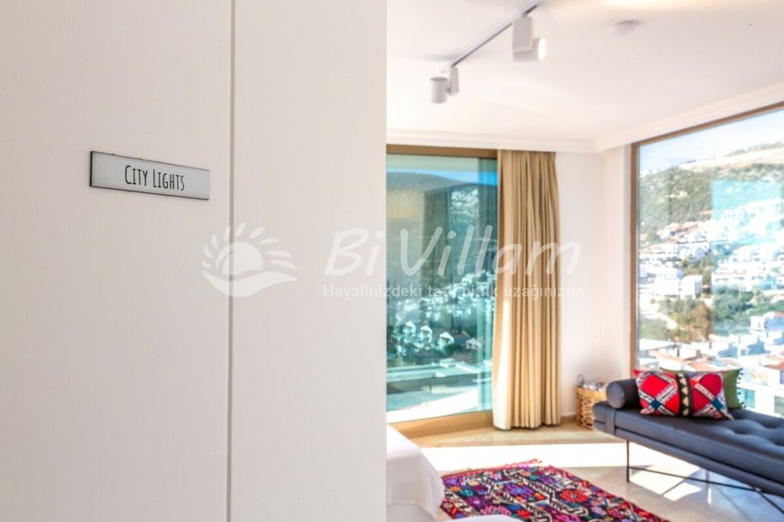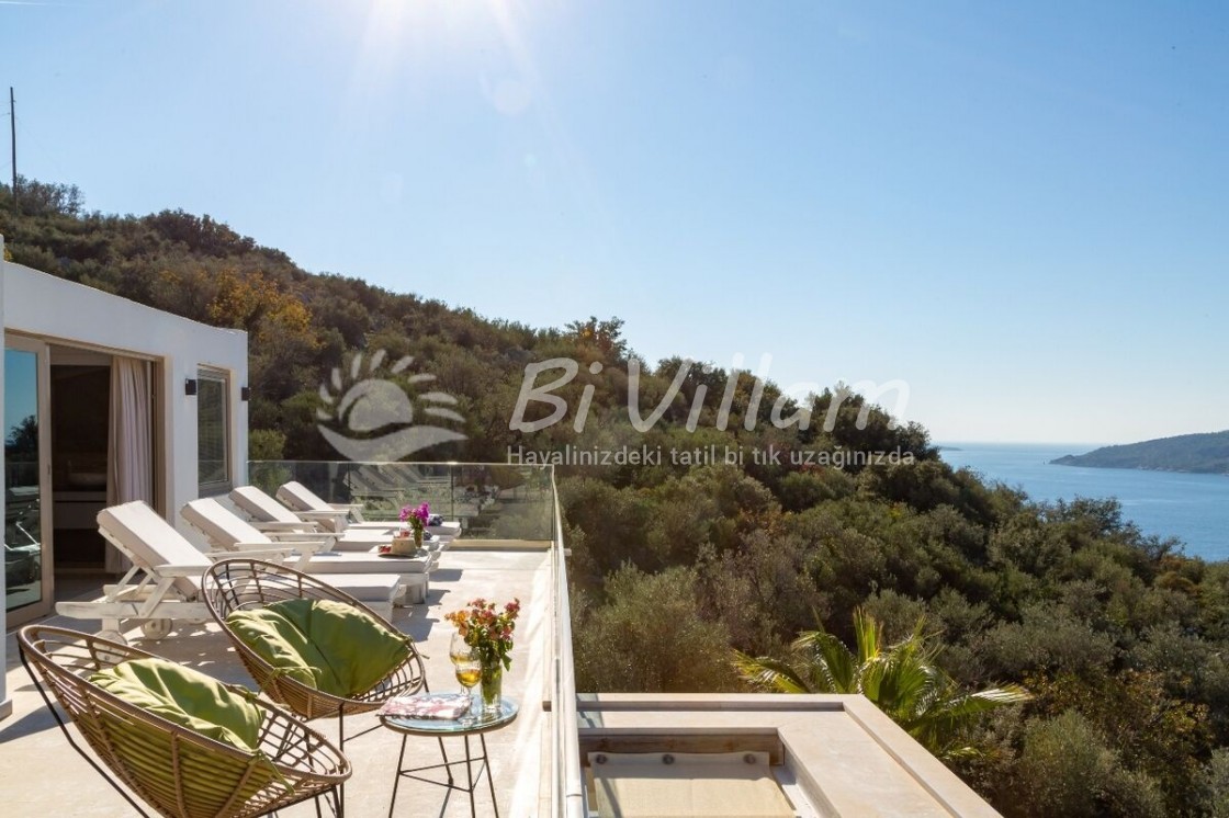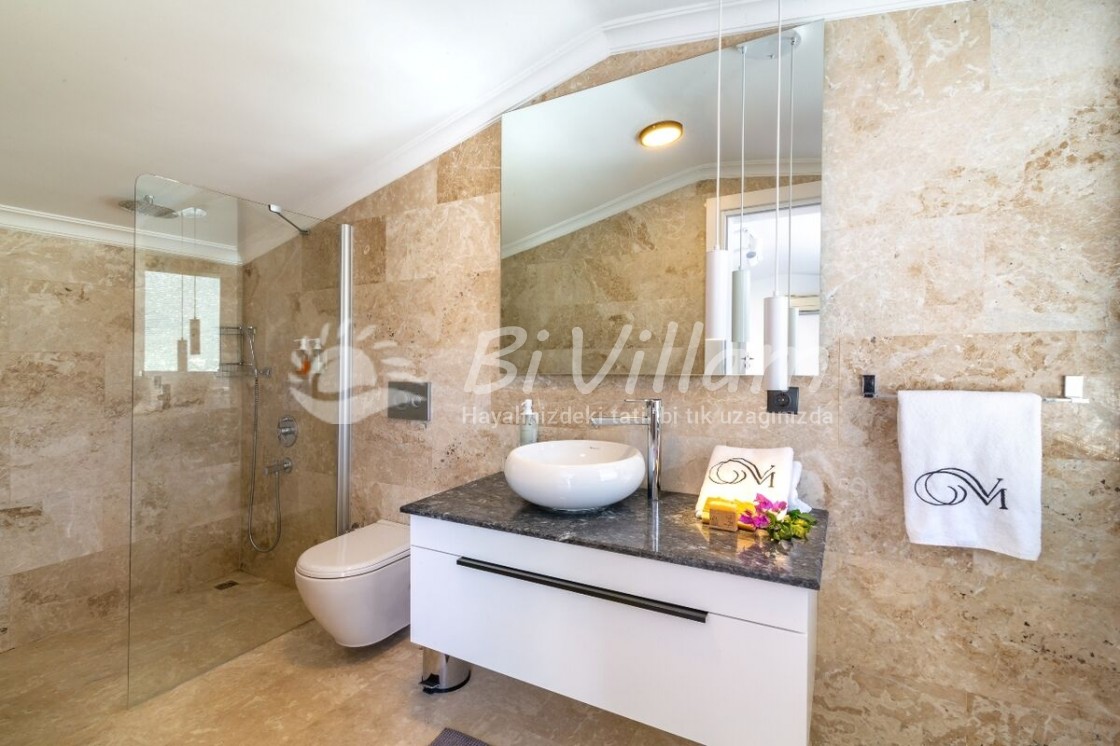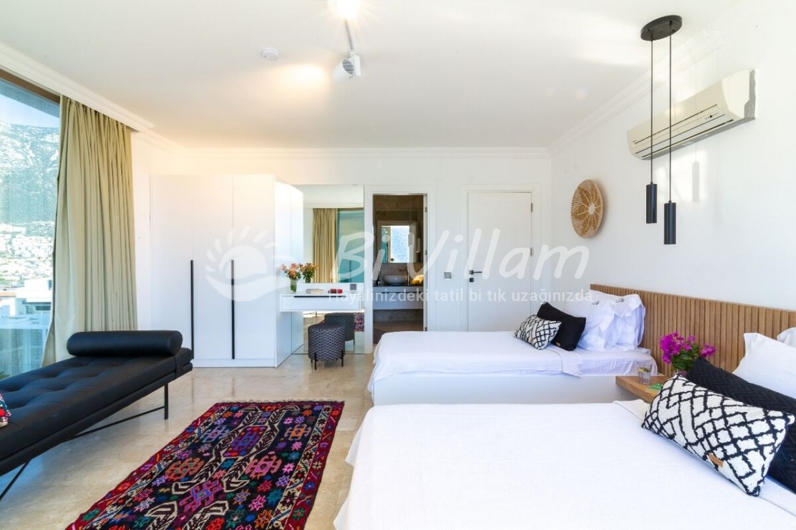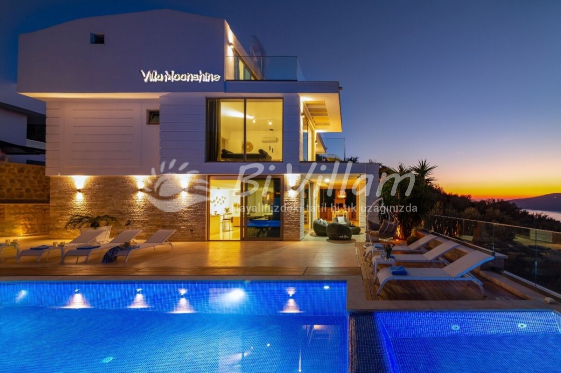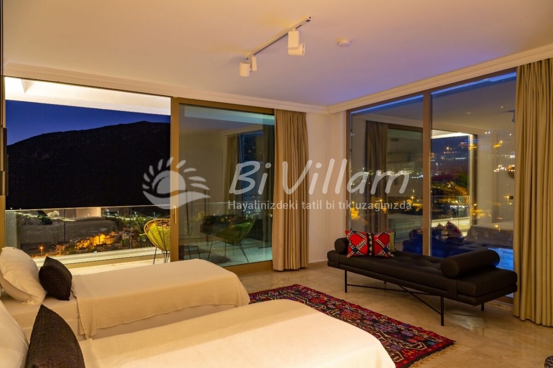 Our rental villa, located in the unique Kalamar Bay of Kalkan, offers a fantastic holiday experience with its modern architecture, stunning views, and luxurious design. The villa is only a five-minute walk from the beach and meets all your needs. With 4 bedrooms, it can accommodate up to 8 people. Additionally, the villa has a children’s pool, designed for the comfort of families with children.