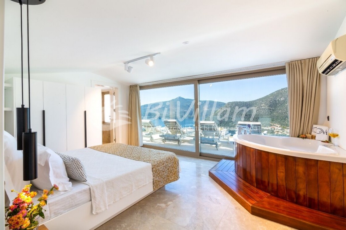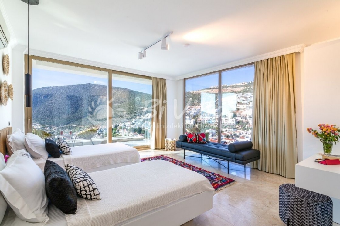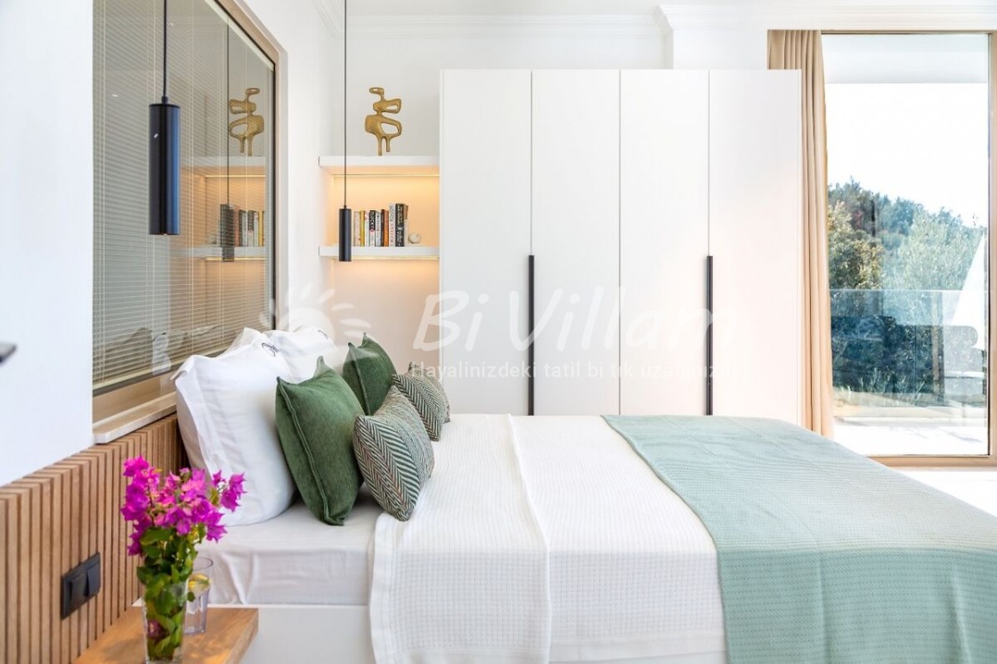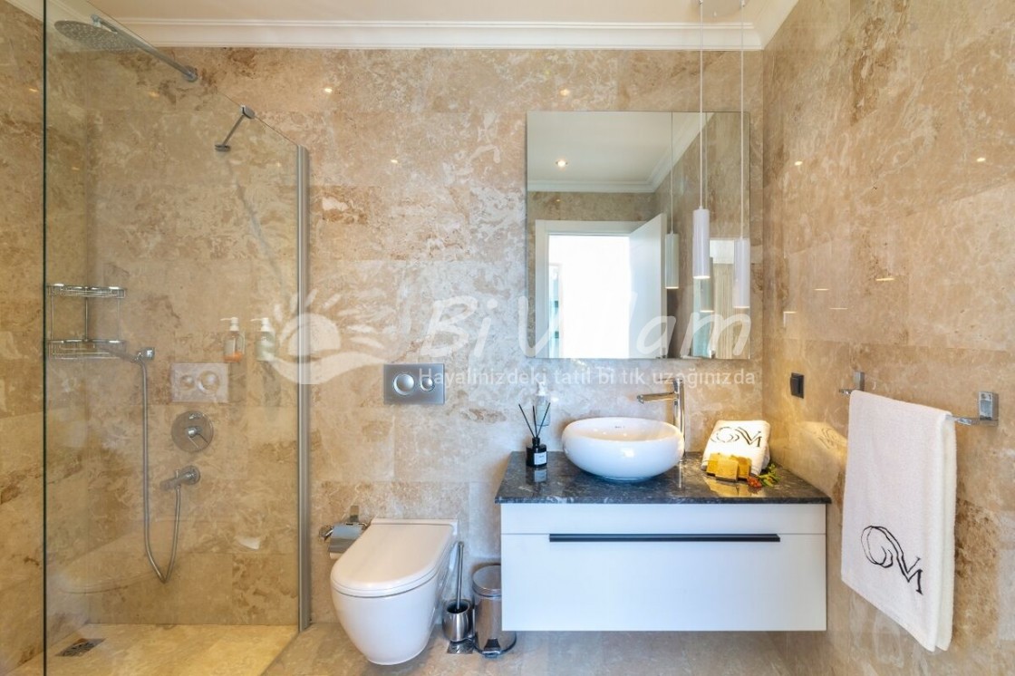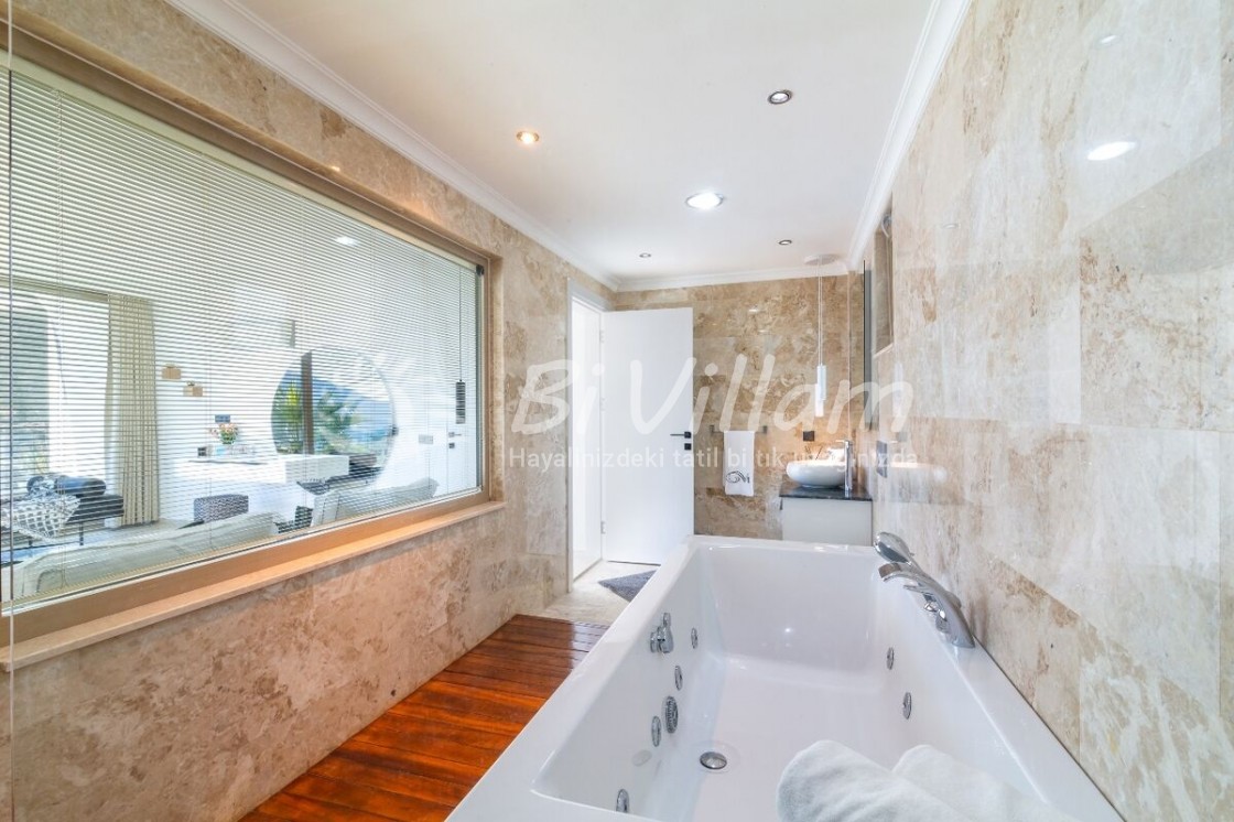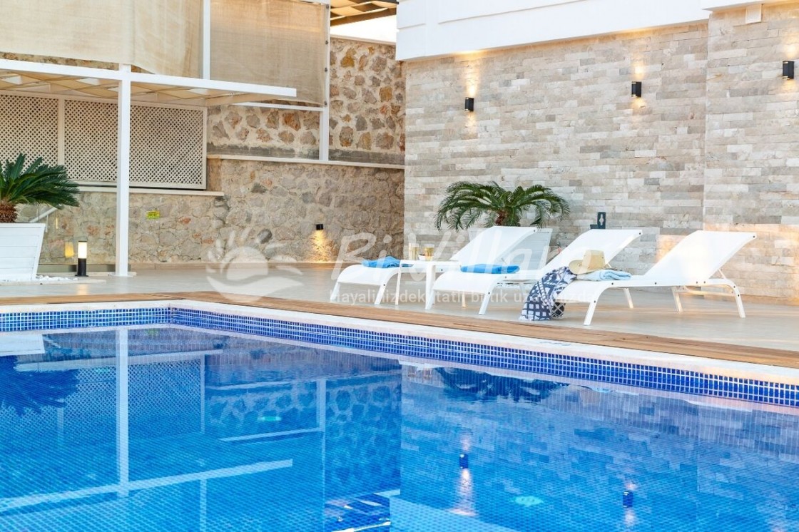 Our rental villa, located in the unique Kalamar Bay of Kalkan, offers a fantastic holiday experience with its modern architecture, stunning views, and luxurious design. The villa is only a five-minute walk from the beach and meets all your needs. With 4 bedrooms, it can accommodate up to 8 people. Additionally, the villa has a children’s pool, designed for the comfort of families with children.