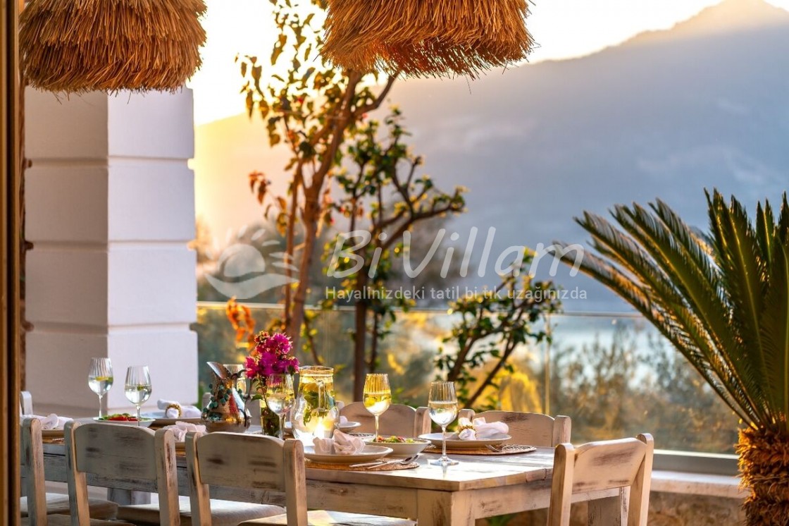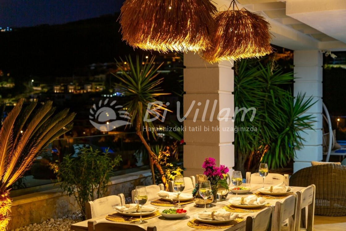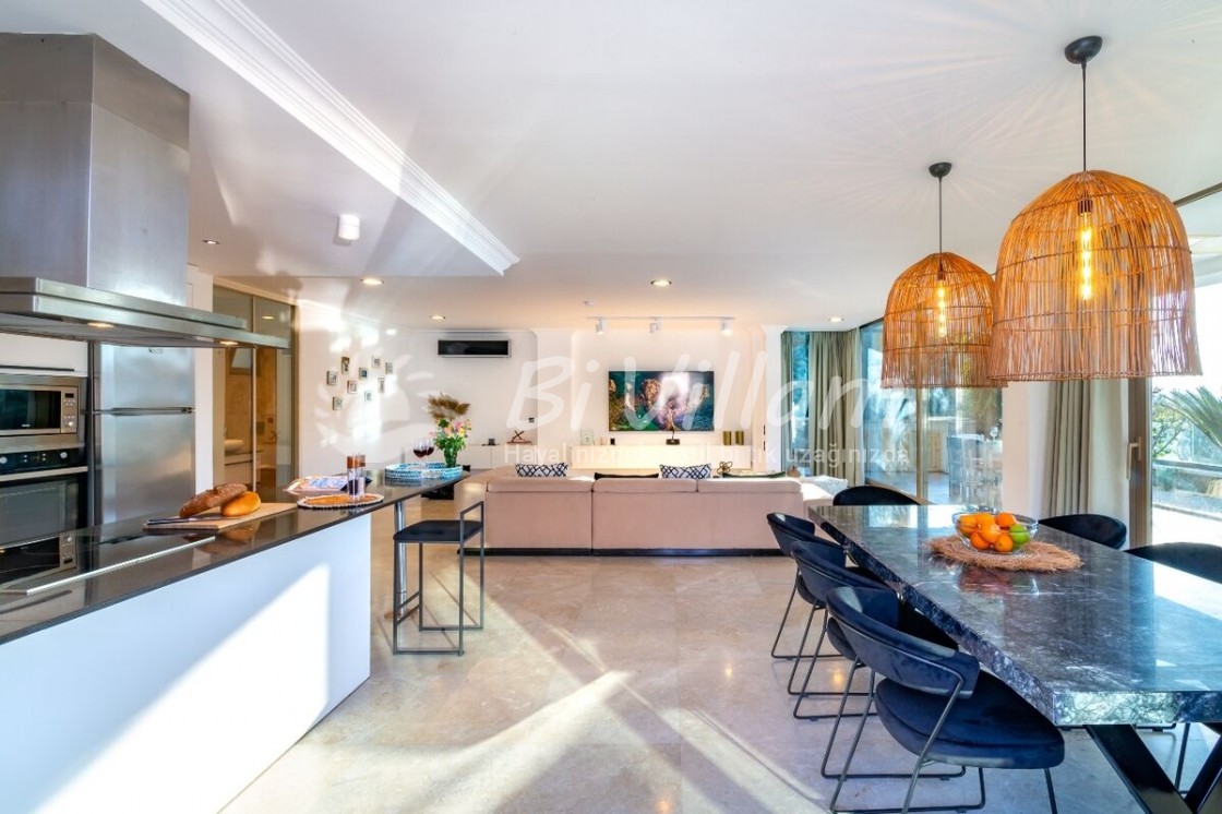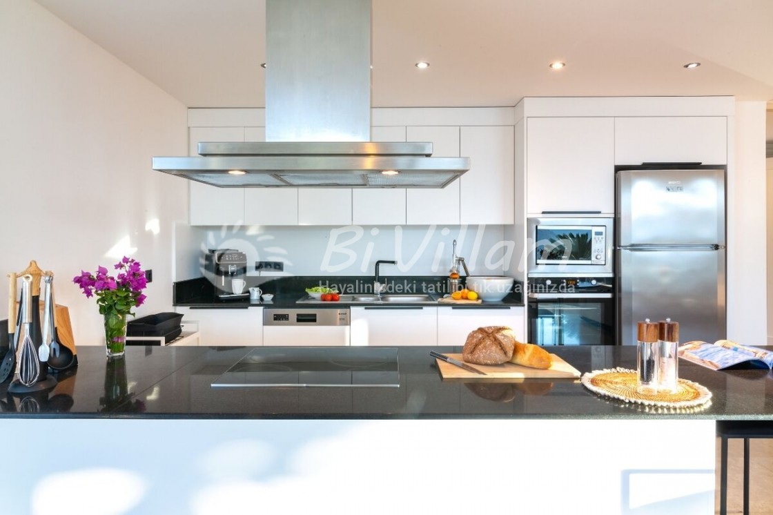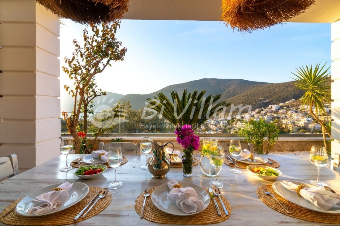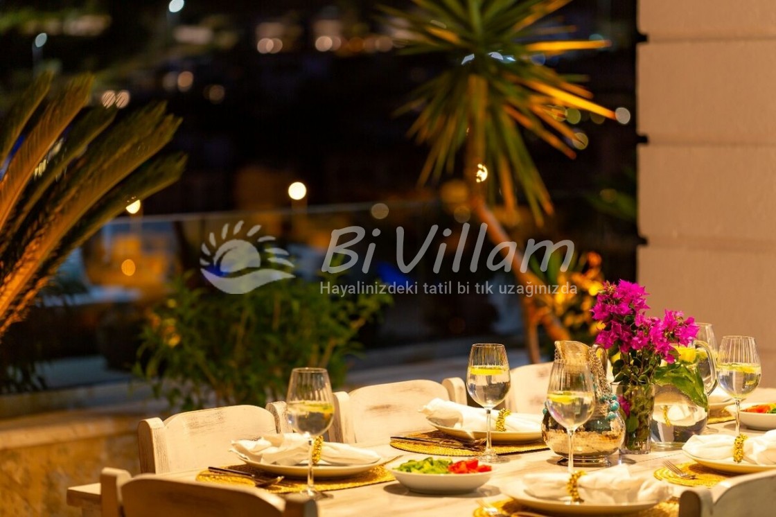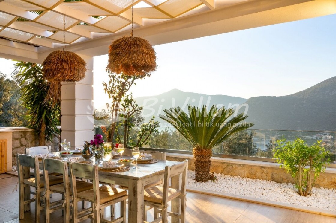 Our rental villa, located in the unique Kalamar Bay of Kalkan, offers a fantastic holiday experience with its modern architecture, stunning views, and luxurious design. The villa is only a five-minute walk from the beach and meets all your needs. With 4 bedrooms, it can accommodate up to 8 people. Additionally, the villa has a children’s pool, designed for the comfort of families with children.